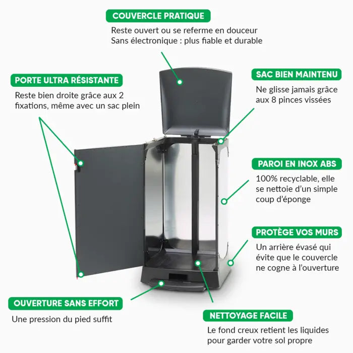 - 2 sacs de 30 litres : idéaux pour le tri des déchets.